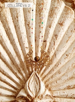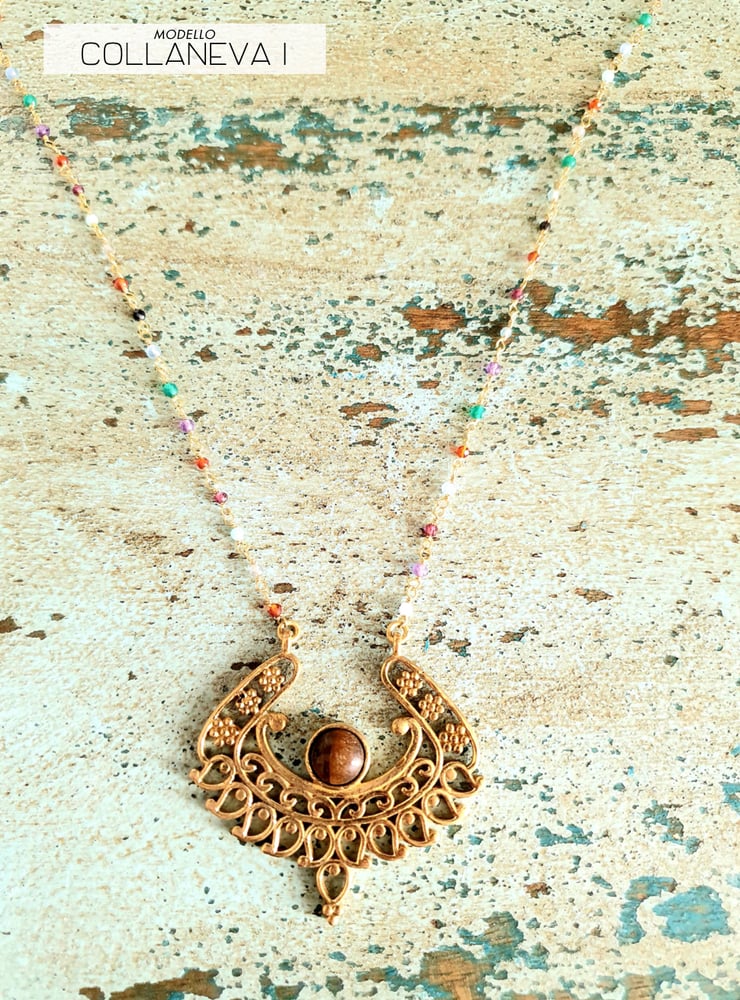 Collane uniche in ottone dorato,con pietre dure (ametista, pietra luna, labradorite, quarzo bianco, quarzo rosa, occhio di tigre, turchesa) rappresentano mandala a spirale e disegni floreali, sembrano assolutamente epici e celebrano perfettamente il design della natura.